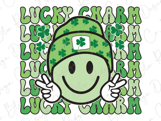 Lucky Charm Smiley Face St Patrick's Day Green Direct To Film (DTF) Transfer