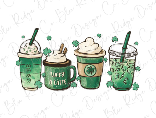 St Patricks Day Lucky Clover Coffee Latte Direct To Film (DTF) Transfer
