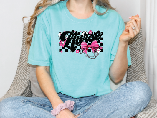 Pink Red Checkered Faux Gold Glitter Graphic T-Shirt