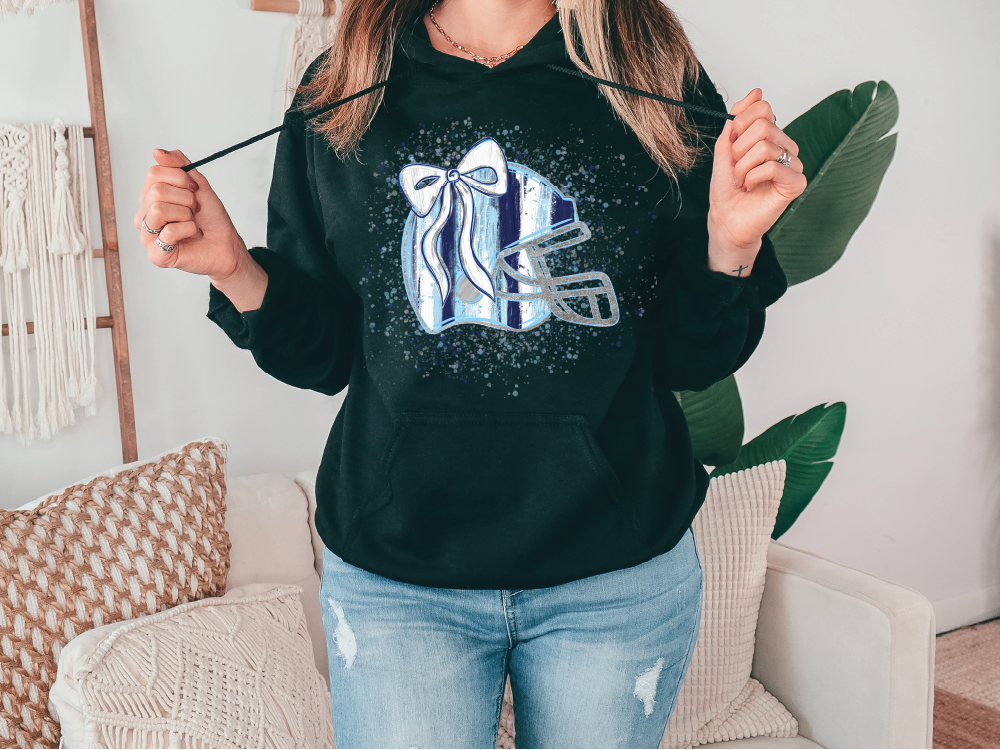 Featuring a bold helmet design accented with a bow for the perfect mix of tough and trendy. The simple but stylish graphic makes it a standout piece for game days, tailgates, or casual wear. A great way to represent your Blue Tide pride while staying cozy and fashionable!