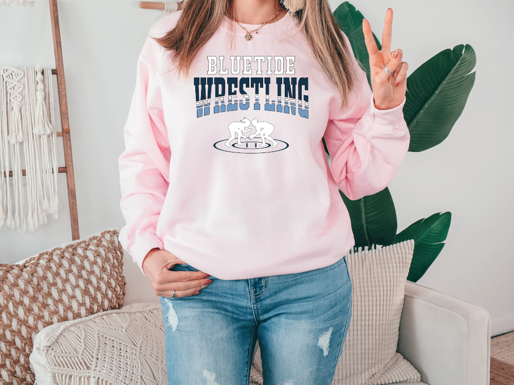 Featuring a bold Blue Tide Wrestling graphic with a two-tone gradient and a detailed wrestler silhouette, this tee is the perfect mix of sporty and cozy. Whether you’re cheering from the stands or representing your team around town, it’s the ultimate game-day favorite.