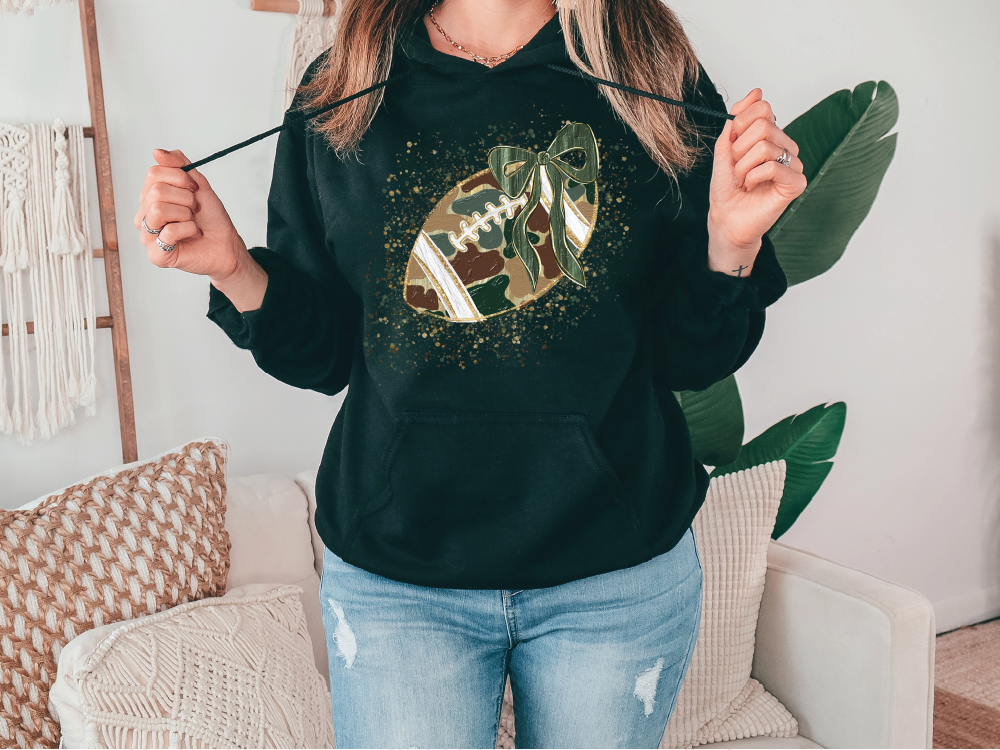 Bring style to the sidelines with our Camo Bow Football Hoodie!
