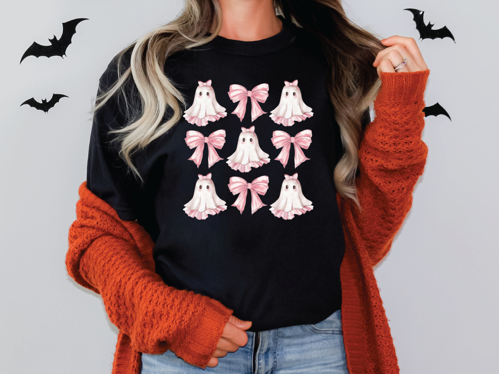 Coquette Pink Bow Ghost Collage Graphic T-Shirt