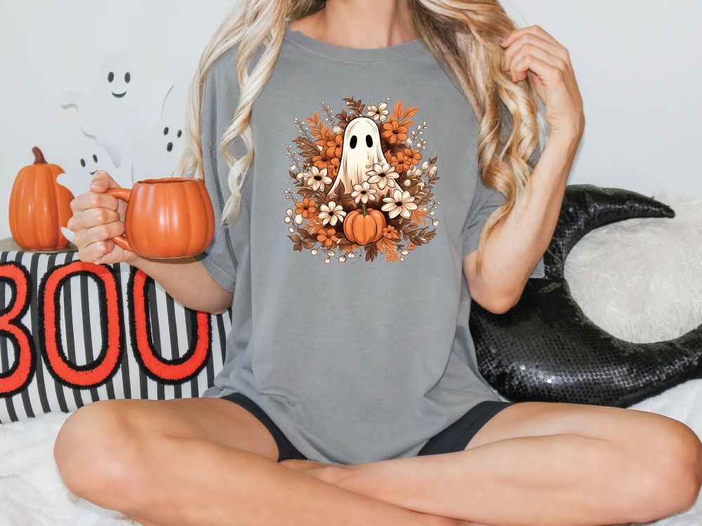 Celebrate the cozy vibes of fall with our Fall Floral Ghost Tee 👻🍂.