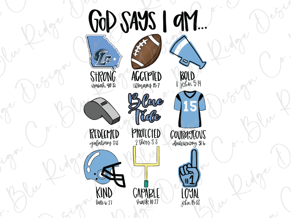This uplifting design features hand-drawn graphics in Long County’s signature Blue Tide colors, paired with encouraging words straight from Scripture — Strong (Isaiah 40:31), Accepted (Romans 15:7), Bold (1 John 5:14), Redeemed (Ephesians 1:7), Protected (2 Thessalonians 3:3), Courageous (Deuteronomy 31:6), Kind (Ephesians 4:32), Capable (Hebrews 10:17), and Loyal (John 15:13).