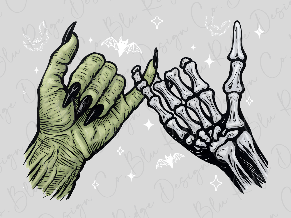 Show off your bold style with this unique graphic tee featuring a fun monster and skeleton pinky promise design.
