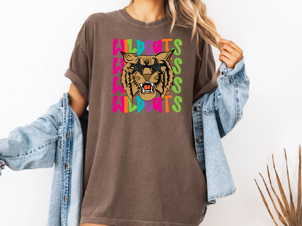 Show off your school pride in bold, vibrant style with our Colorful Wildcats Graphic Tee! 🎨🐾