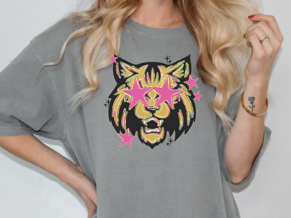 Preppy Neon Star Eyed Wildcats Mascots Graphic T-Shirt