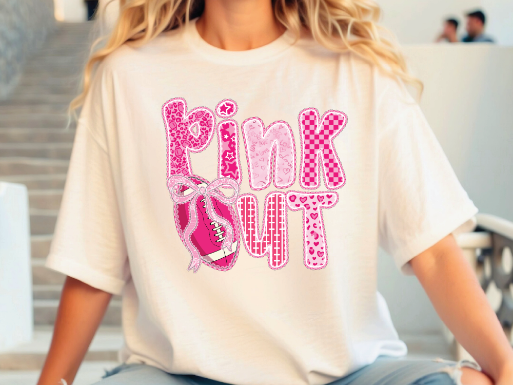 Designed with fun patterned block letters, a football accent, and a sweet bow, this tee is perfect for game days, breast cancer awareness events, or just repping your school spirit with pride. The vibrant pink tones stand out beautifully, making it both sporty and stylish. Whether you’re in the stands or out on the town, this tee brings the perfect mix of cute and powerful energy to your outfit.