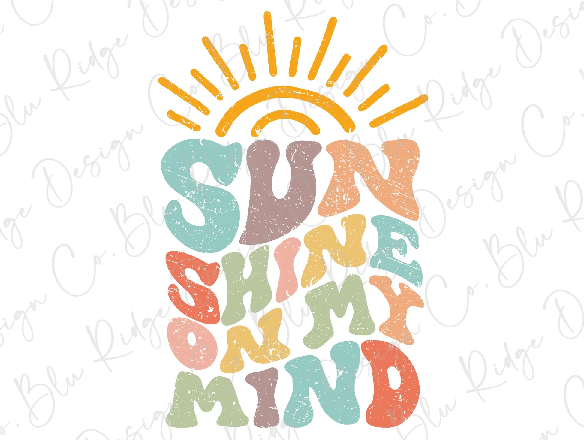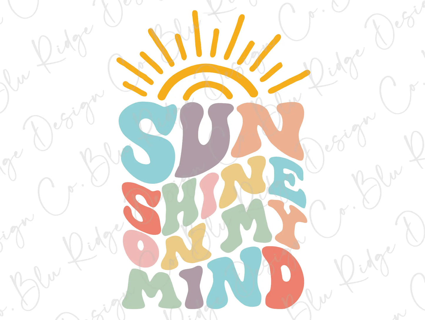 Sunshine On My Mind Vintage Summer Beach Wavy Stacked Design Direct To Film (DTF) Transfer
