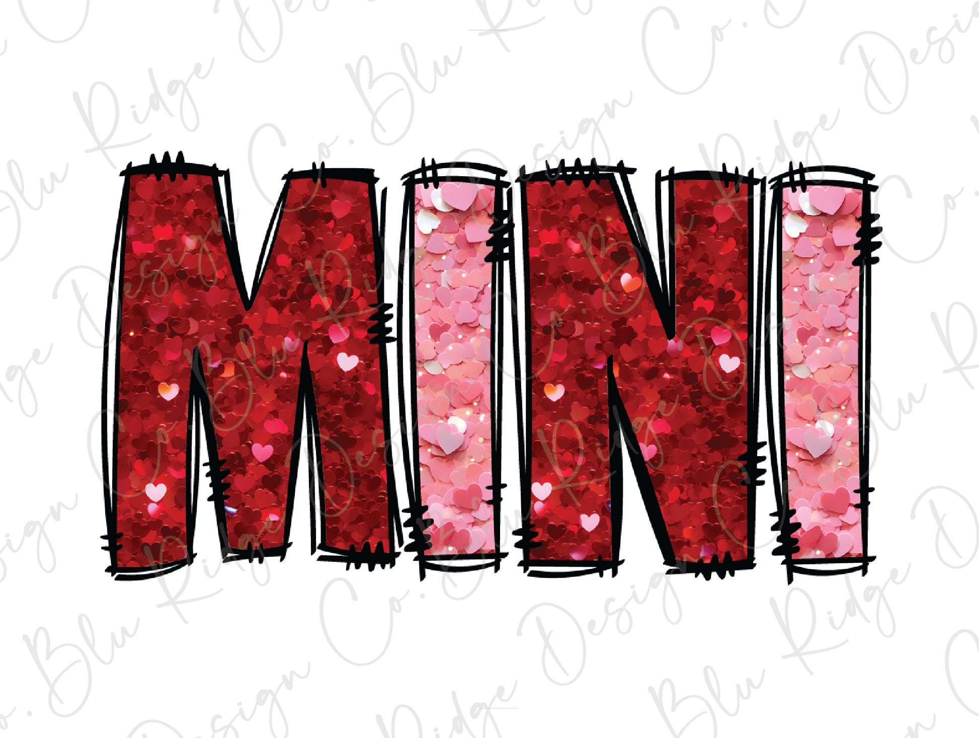 The “MINI” Heart Fill Block design features bold, chunky lettering filled with shimmering heart details for a playful and eye-catching look kids will love. With its strong block font and layered heart texture, this design is perfect for Valentine’s Day, matching family outfits, or everyday wear that shows off a whole lot of love. It pairs beautifully with coordinating MAMA styles or stands out all on its own.