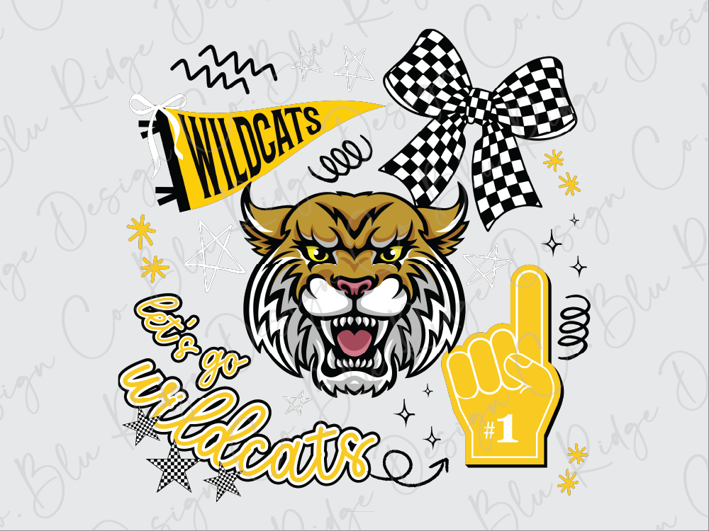 Featuring a bold wildcat graphic, checkered bow, foam finger, and fun doodles, this tee is all about school spirit. Perfect for game days, pep rallies, or showing off your everyday pride, it’s made for fans who want both comfort and style. The soft unisex fit ensures all-day wearability, while the standout gold and black design keeps your Wildcats loyalty front and center. Pair it with jeans, shorts, or spirit wear for the ultimate fan look!