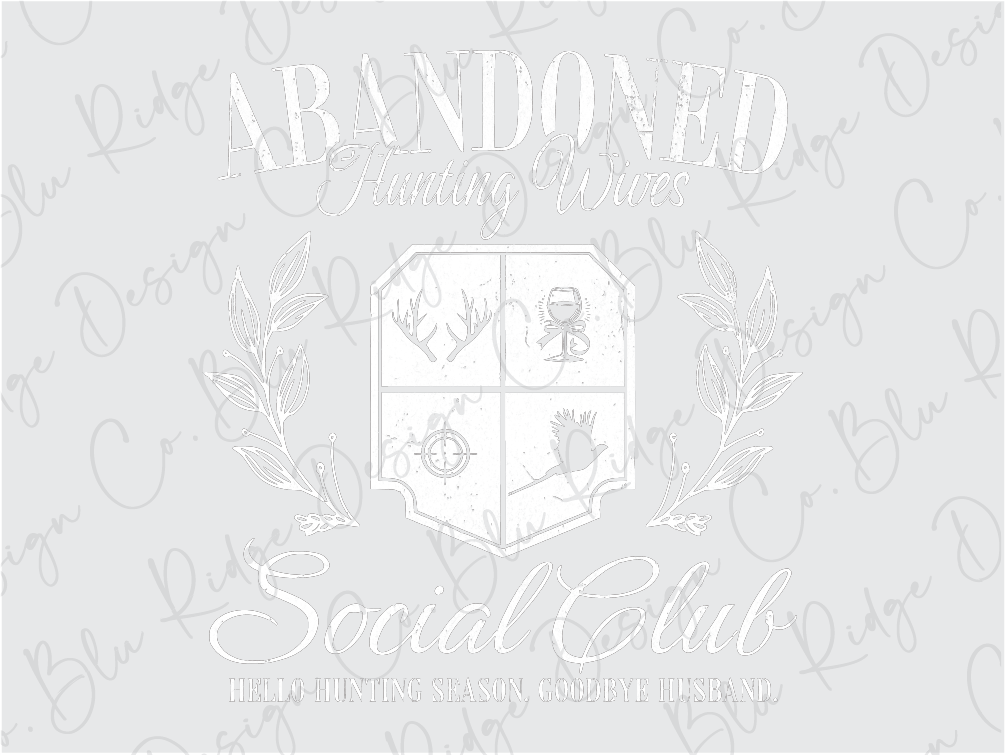 The Abandoned Hunting Wives Social Club Tee features a bold vintage-style crest with antlers, wine, and woodland flair, framed by elegant laurels and the tongue-in-cheek slogan: “Hello hunting season, goodbye husband.” Whether you’re at camp, tailgating, or surviving solo weekends — this one’s your badge of honor.
