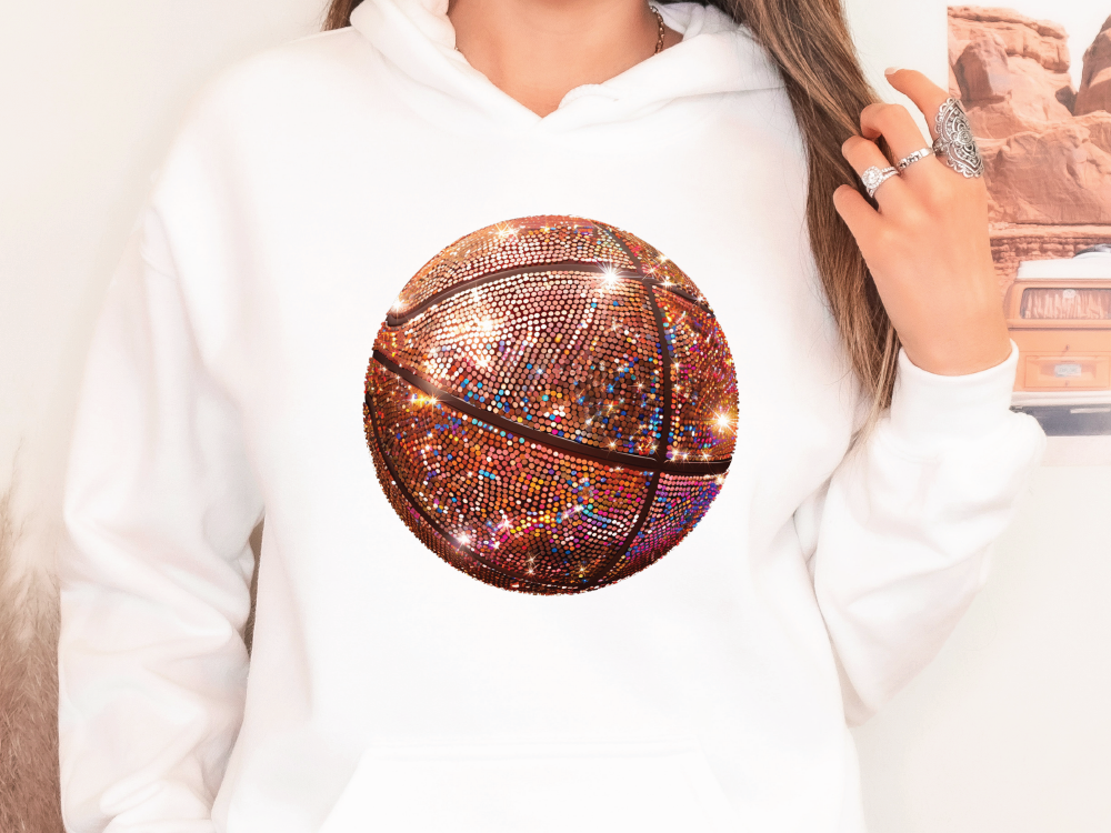 This eye-catching design features a sparkling, rhinestone-inspired basketball graphic that captures the perfect mix of glam and game-day energy. Whether you’re cheering from the bleachers or rocking it around town, this tee brings comfort, style, and a whole lot of shimmer.