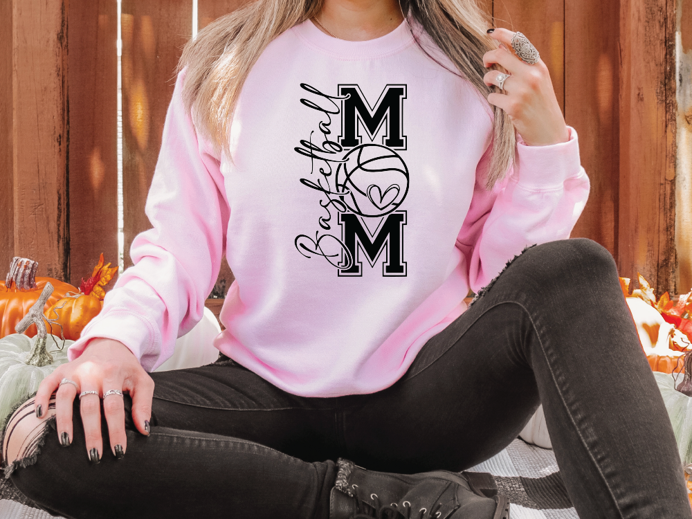 Cheer in style with the Vertical Basketball Mom Sweatshirt! 🧡🏀