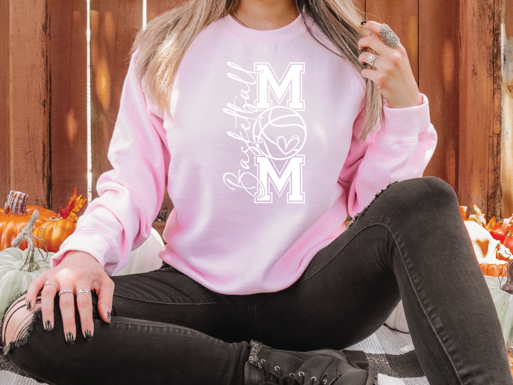 This bold, vertical “MOM” design features a basketball with a heart detail — perfect for showing your love and pride both on and off the court. Perfect for game nights, practices, and everyday wear! Pair it with jeans or leggings for an effortlessly sporty look that’s as comfy as it is proud!