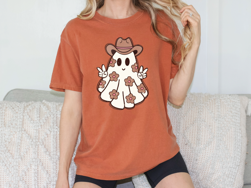 Bring a little Western charm to spooky season with our Cowboy Flower Ghost Graphic Tee!