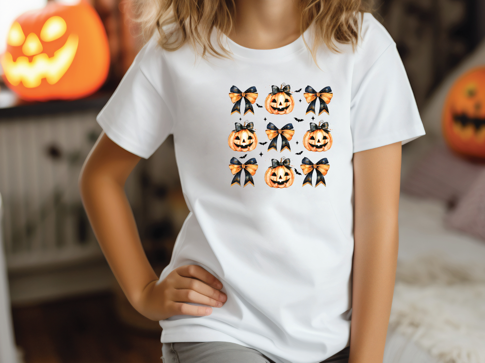 Sweet meets spooky with our Pumpkin & Coquette Bows Halloween Tee!
