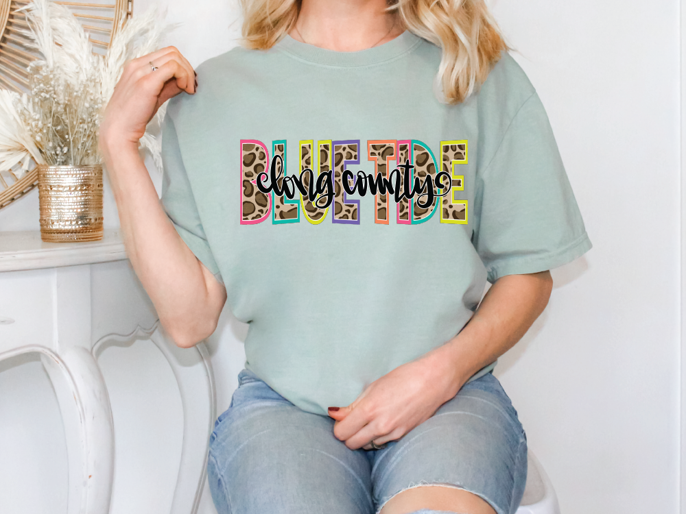 Featuring a colorful cheetah pattern and layered “Blue Tide” lettering with a playful “Long County” script overlay, this shirt brings school spirit with a fashionable flair. Perfect for game days, pep rallies, or casual Fridays, it’s made from soft, premium fabric that keeps you comfy while you cheer on the Tide. Pair it with jeans, shorts, or a cozy flannel for the ultimate fan look!