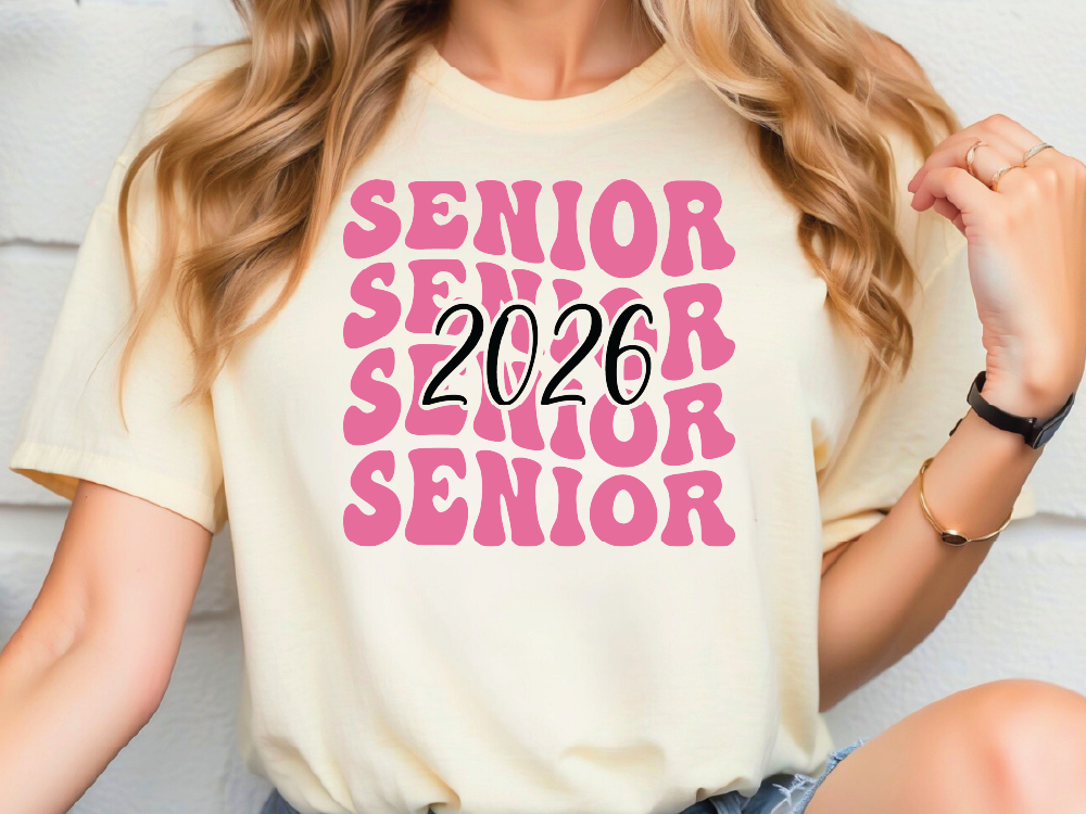 Pink Wavy Senior 2026 Graphic T-Shirt