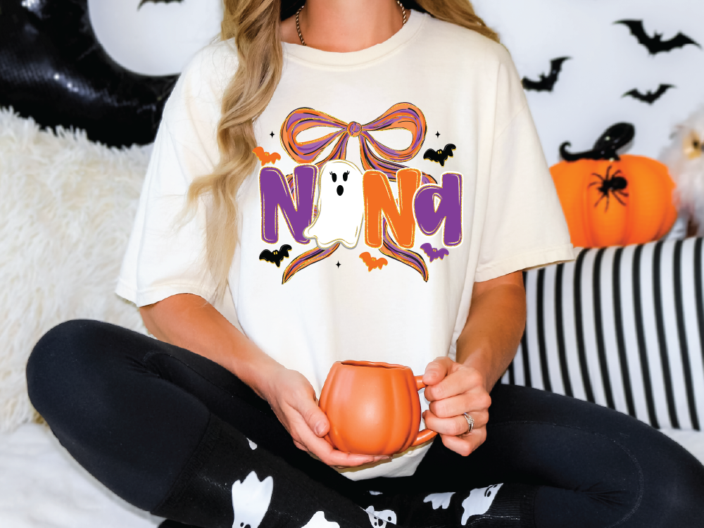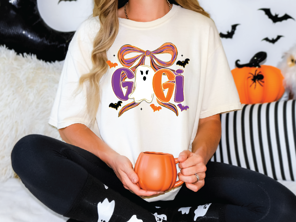 Celebrate spooky season in style with the Gigi Ghost Tee! 👻💜🧡