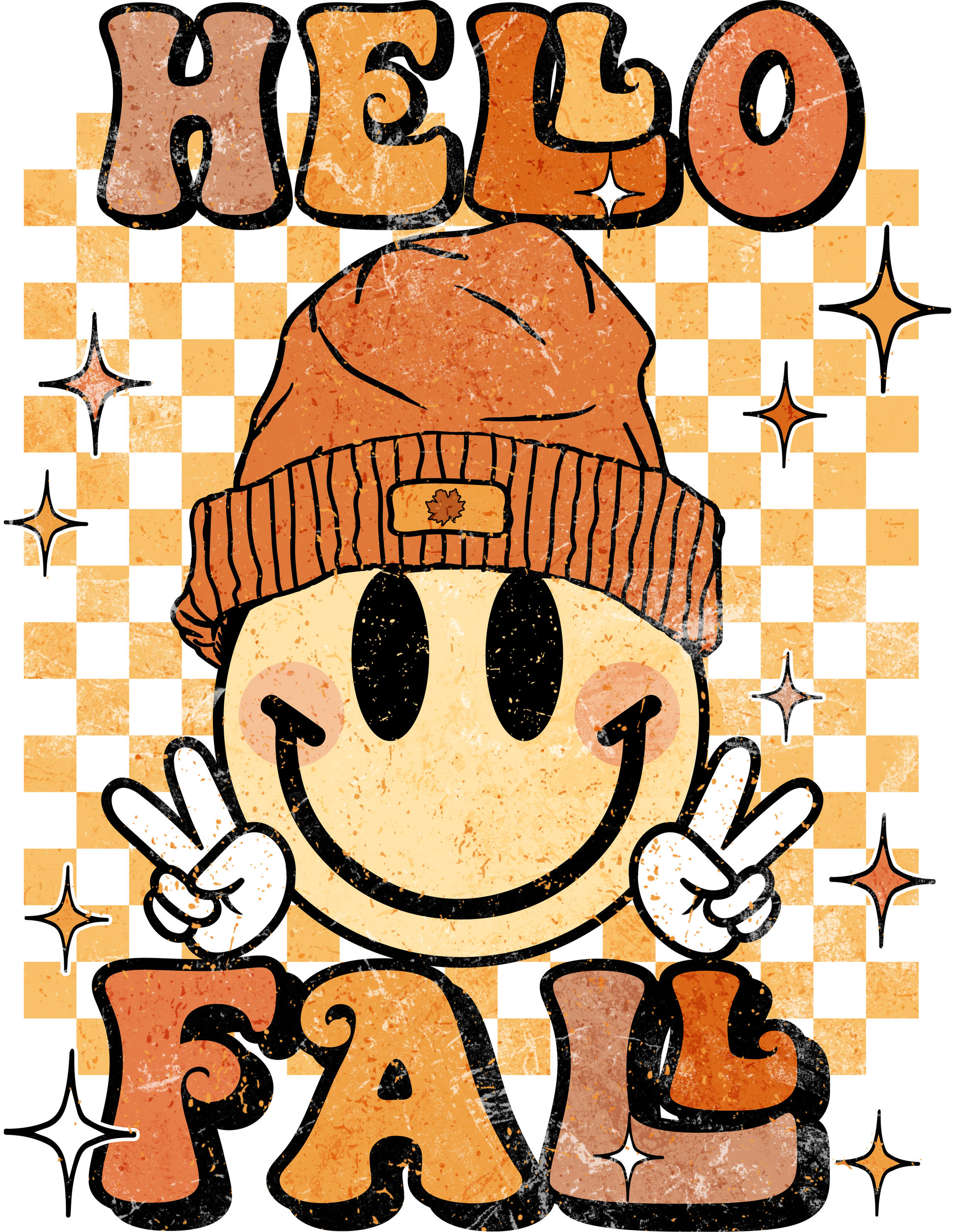 This fun fall favorite features a small front chest design and a bold back print with a retro smiley face rocking a beanie and peace signs — all set against a trendy checkerboard background. Perfect for pumpkin patch trips, coffee runs, or lazy weekends, this tee combines comfort with vintage-inspired fall style. Made from soft, high-quality fabric, it’s the perfect way to welcome autumn in comfort and charm!