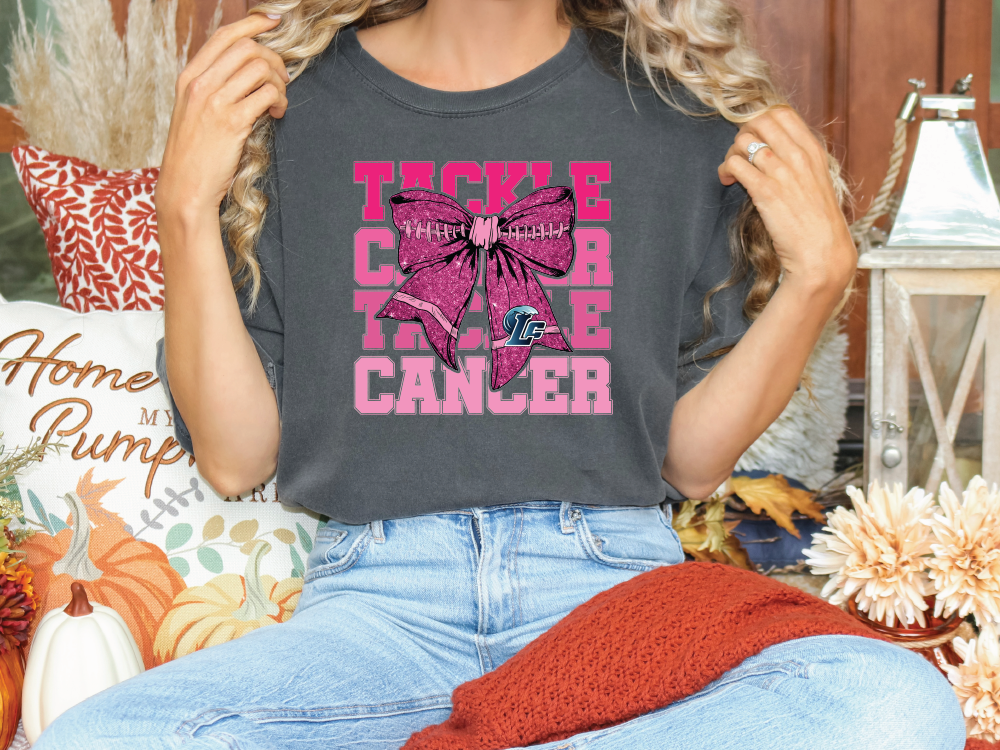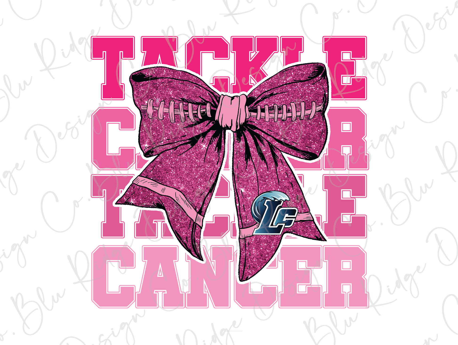 Tackle Cancer Blue Tide LC Breast Cancer Awareness Bow Direct to Film (DTF) Transfer