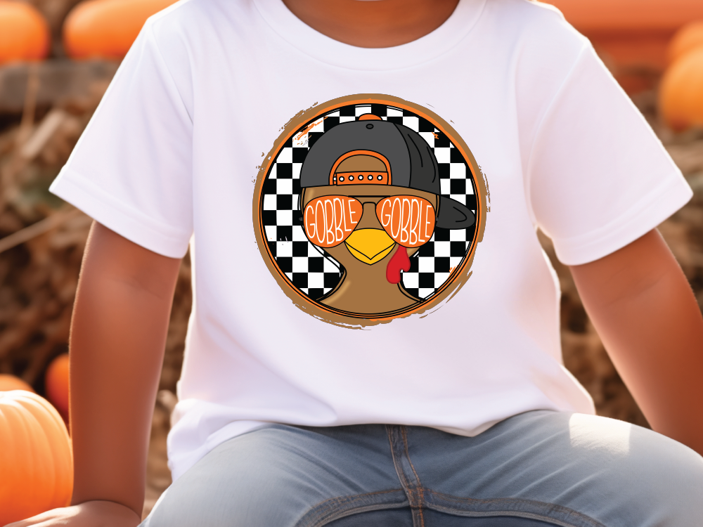 Your little one will be the coolest turkey in town with our “Gobble Gobble Checkerboard Turkey” Kids Graphic Tee 🧢🦃.